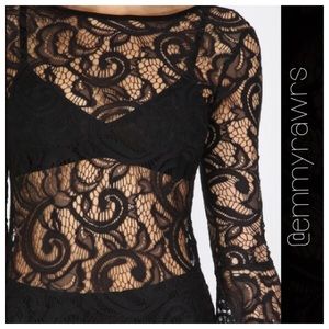 Gorgeous laced bodysuit. Features a floral pattern and a bell sleeve. Made of polyester and laced. The bodysuit is see through and will require a bra and pantie. ( Model is wearing her own bra and pantie which is not included! ) Crotch area have buttons so it's easier to put on.