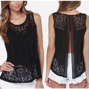 🌺NWOT. Black crochet/lace detail// open back top. ❌Since this is an open back top size may vary❌Hand Wash Only🌺🌺