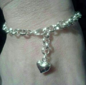 ONE LEFT! New, High Quality, Thick/Heavy, Rolo Chain, Solid Heart Pendant, *Adjustable Bracelet, Set in 925S/Rhodium. *Adjustable for Wrists up to 7.5". Comes w/a Polishing Cloth & Gift Box.