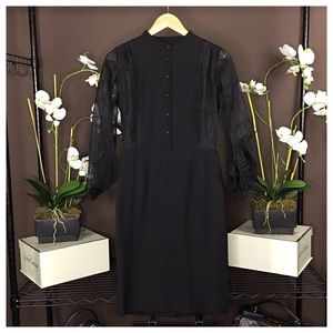 Fendi Black Teardrop Sleeve Dress: Paisley embroidery and billowy teardrop sleeves add a vintage edge to the sleek & classic silhouette of this Fendi dress. Features a mock collar; & button front, three-quarter sheer teardrop sleeves with cutouts & paisley embroidery. Straight skirt with back zip. Material: Viscose/wool; lining, silk. Color: Black. Made in Italy. Size: US10-FR 42 (measurements listing soon) NWT! SOLD OUT! Condition: Pristine (TAGS may not list retail price)