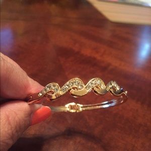 18k Yellow Gold Plated Twist Clear Austrian Crystal Wrist Bangle Bracelet. Brand New