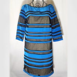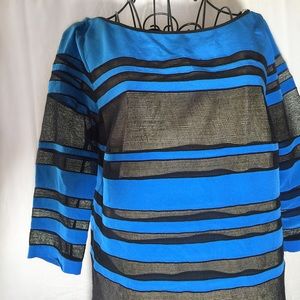 Blue silk stripes in cobalt blue. Mesh netting stripes follow throughout. Slip underneath creates a nude sheer appearance. Worn once. Good condition. Retail $455 Size 2 Small . Approx measurements bust 17.5" , 30" length