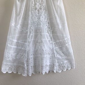 Adorable boho racerback tank from Free People. White color with green yarn rope detail around arms/neckline. It is a mesh material with a beautiful crochet lace design at the hem and all over the back. Very sheer, wear with a tank or bandeau underneath. Size xs & in good condition. B5