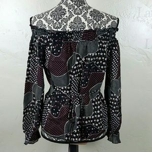 A beautiful off the shoulder floral print dressy top. Material is thin, perfect for the summer! Perfect to take dress up with slacks and take to work or great for a summer look and pair it up with cute shorts and sandals.