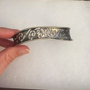 .925 Sterling Silver. Oval shaped wavy bangle perfect for stacking or wearing solo.