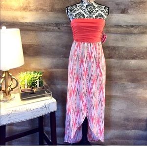 Aztec Peach Strapless High Low Maxi Dress/Skirt