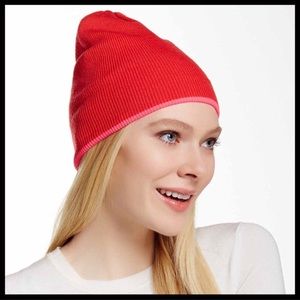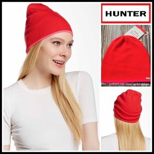 HUNTER ORIGINAL LUXE RED NEON TRIM WOOL BEANIE HAT