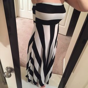 Black white strapless maxi