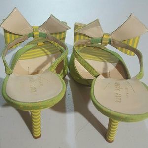 Kate Spade NY Designer Heels, Made in Italy, Striped Details with A Bow in Back that Adds LadyLike Flair to a Flirty Versatile Pump! Slingback Bow Can Be Flipped to Front on Vamp, See Last 2 Pictures, Styled with a Peep Toe and Slender Heel!