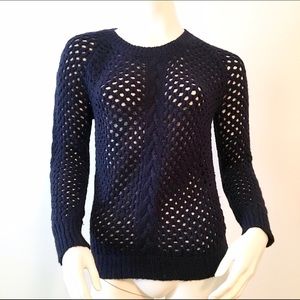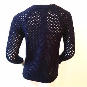 Parisian chic at its best, this Isabel Marant baby alpaca pullover perfectly compliments just about any outfit. Featuring loose knit design with cable knit accent, ribbed neck, hem and wrists. Gorgeous rich navy color. Size 1. Slight pilling throughout as pictured. Please note all items are previously worn unless otherwise indicated. Please ask all questions before purchase.