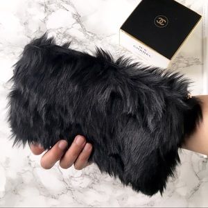 Faux fur ball wrislet in Black. With lining. 8x5".