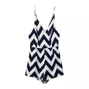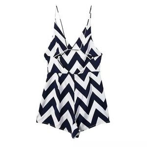 ✨THE LEO BLUE WHITE CHEVRON ROMPER NWT❤️