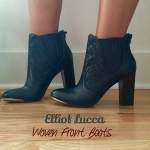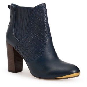 Super cute navy leather boots with gold hardware. Never been worn. Will come in original box. Small imperfection on inside of heel, not noticeable.
