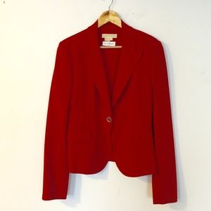Add a pop of color with this authentic Michael Kors Collection (runway line) true red blazer. I loved this jacket sooooo much I purchased it despite the size figuring I could alter it smaller, but never got around to it.