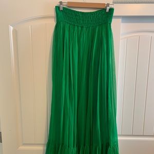 Gorgeous high waist skirt, silk, vivid green, custom made, I am 5'9", not wearing high heels, i have the same skirt in a diff pattern white&beige also posted. Price firm.
