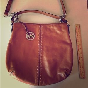 Used 2 to bring snacks into movie theater. Deserves better use! No wear. Brown w/ silver embellishments. Has short strap & long one to make crossbody or shoulder bag.