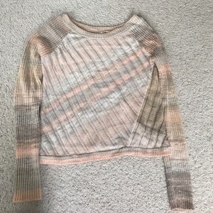 Unique free people scoop neck sweater. It's light weight and perfect for any time of the year. Worn once. Peach color that will match with anything!