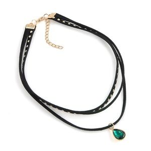 Brand new! 3 layered choker necklace. One layer features round studs. One layer features a deep green rhinestone pendant. Such a beauty! One size fits most. 2" extender with lobster clamp.