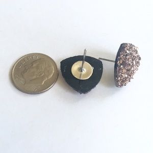 New! Handmade by me large 16mm acrylic flat bronze/copper/dark rose gold color Flat rocky faux druzy triangle bead on silver tone posts. Silver backings. Lead & nickel free. PRICE FIRM if purchasing 1 pair($8). No trades. Last 2 pics taken outside. Color can vary slightly.