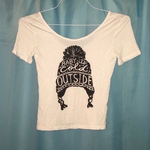 This is a tight, white Aeropostale crop top. It's very soft and super cute. It says, "Baby It's Cold Outside." I love it so much, I'm sad to give it away, but it was barely worn so I should get rid of it. 😂