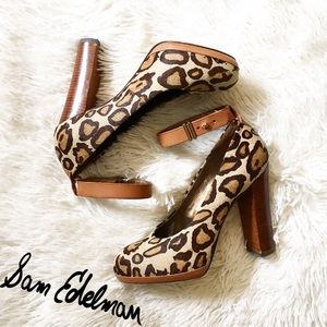 Leopard pumps only worn twice. There's a tear in one of the ankle straps but can be repaired or have both straps removed completely.