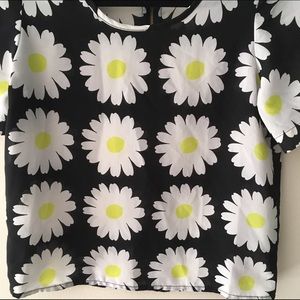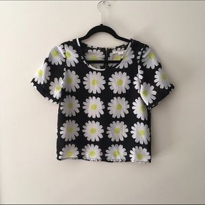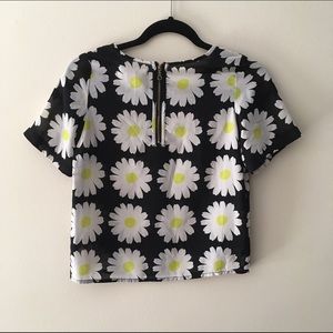Adorable sheer daisy printed crop top. Brand is Shrinking Violet. Zips up in the back. Great condition. No rips or stains. Length: 20 inches. Bust: 15 inches. !00% polyester. ❌No trades❌