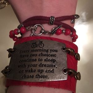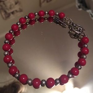 Silver and red bracelet with a "T" clamp. Adorable for stacking, or on its own. Great gift for those mothers with Pi Beta Phi daughters! (If you do, make a request... I have a closet full of cute gifts and trinkets when I was a alumni!) 😇