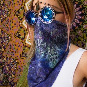 RESTOCKING --Beautiful brand NWT in packaging black oversized round sunglasses with ornate silver geometric detailing and blue reflective uv400 lenses. Frames are plastic with metal detail. Absolutely perfect for burning man!! I wish I was going this year so I could rock these babies--so swoop them up for me to look BOMB AF at whatever festivals you're going to this summer 🌞🌈💕☺️ Last photo shows all color options ☺️not Unif just tagged for style pairing 😈 scarf is available for preorder too.