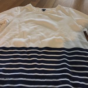 Sweatshirt pullover. Nautical stripped with color blocked white/cream design. Quarter length sleeves. (Tiny red spot at the bottom of the shirt shown in the last picture) other wise amazing condition!