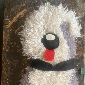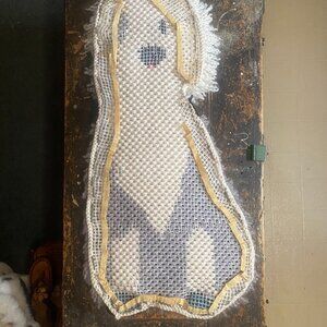 Holy Sheep! this vintage hooked rug sheep dog is adorable. Anyone who is a fan of Sheepdogs, the band included, will love this completed rug. Ready to lay or hang in your home or cottage. Want a dog but not the work, this rug would accomodate you well. This piece of art would make an excellent gift for that dog lover, crochet lover, art lover and music lover in your life.