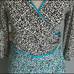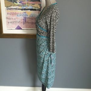 Gorgeous animal print dress from London Times . Features a lined crossover top part , hidden back zipper , stretchy material . Made of 95% polyester/5% spandex . Machine washable . ✨Size 6 displayed on mannequin✨