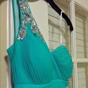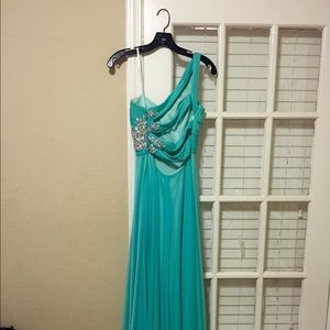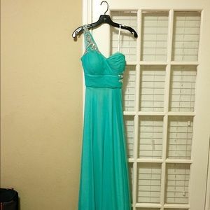 Perfect for Prom season especially since dress can be so expensive! Here is an elegant and affordable option: The turquoise bedazzled dress is from Neiman Marcus, only worn twice, size 2.