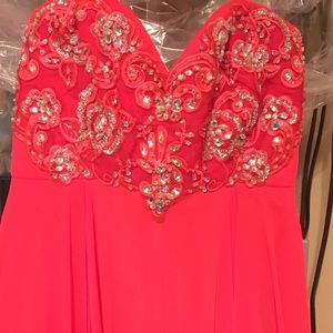 NWT -- **This is a junior size 9 however I have placed a size chart above to show that this fits a size 4 regular* This super-cute, jeweled appliqué bodice and latticed back, our neon party dress will be a big hit under the disco ball.