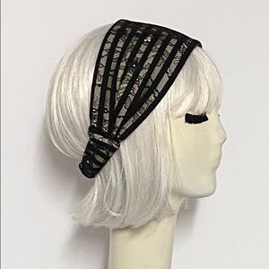 Wide- Headband- Black Striped Lace Lycra Knit