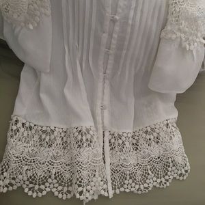This button-down cold shoulder top is in excellent condition! It has super cute lace details.