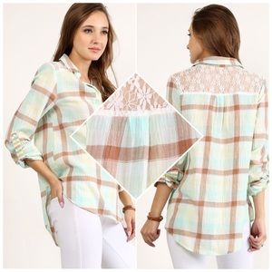 Lace Contrast Plaid Top