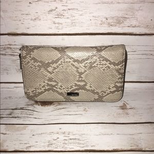 Thirty-One all about the Benjamin's wallet. 13 card slots. Big enough to hold a checkbook or cellphone. Can attach wristlet strap. Never used. Gorgeous putty snake color!