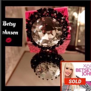 Betsy Johnson Vintage Ring Encrusted RARE/RETIRED Statement Piece💋Signature Betsy NWT never worn💋Crystal Cocktail Ring💋If you cant run w/the Big Dogs,stay on the porch💋Not 4the faint@Heart clear crystal,black plated brass sz6 w/INNER ADJ. RING 6,6.5 OR 7 NY designer Betsey Johnson built her career in fashion by following her own set of rules Known for her celebration of the exuberant,the embellish,the over the top Betsey has been rocking the fashion industry w/her unique designs since 1960’s