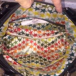 Big Buddha /Steve Madden purse made with patent vegan leather, lots of pockets and fun star lighting