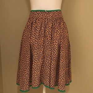 New with tag on size small, brown color with little green around the waist and the edges, waist measurement is 13" waist and 16" lengths back zipper