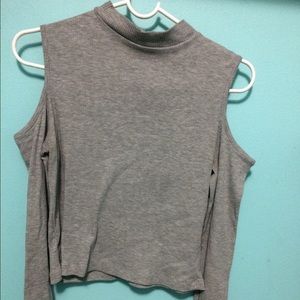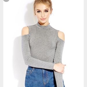 Brand new grey cut shoulder sweater top, has a working zipper in the back , size M