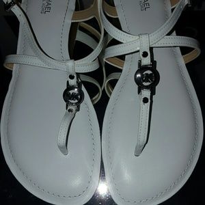 Brand new. In pristine condition with original box. Patent leather in optic white, round open-toe T-strap slingback flat sandals. No trades.