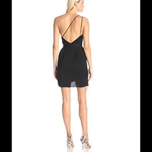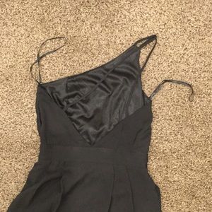 Must have Night out dress open back with asymmetric spaghetti strap and draped ruffle at skirt banded waist 100% Polyester