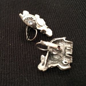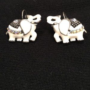 Elephant Pierced Earrings white, black & iridescent stones. Elephant is approximately 1" wide x 3/4" tall. They look a little antique. Never been worn.