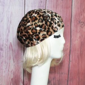 Velvet leopard beret hat, 6 panel fitted velvet leopard beret hat, lined in rayon print and 1" elastic band.