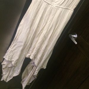 Miami from Francesca's Hankerchief Hem Summer Dress. Crepe fabric. V neck. Embellished with embroidery. Elastic waist. Above knee and calf length. Worn once. Perfect except wrinkles.