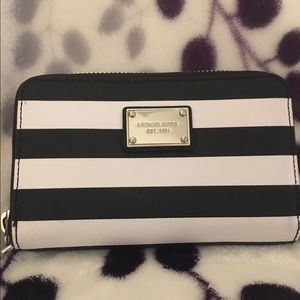 This detailed wallet is perfect for storing cards and cash for the on-the-go person. It's smaller size allows it to fit more easily in cross body bags and other small purses! It has barely been used and is in great condition!
