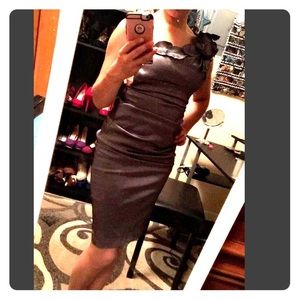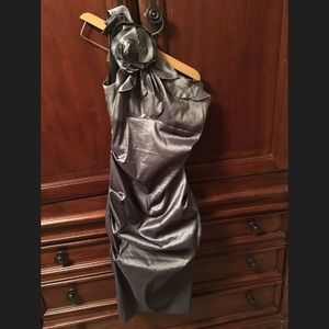 Caché Formal Gray Size 4, Shoulder Strap. Worn Once. As shown in picture one area in bottom front looks like something rubbed against and left a mark. Not noticeable. Very beautiful dress!