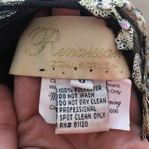 Black and gold homecoming dress. Only worn one time! Size 0 from Renaissance Bridals. Perfect condition, gems and everything all in tact! Has a mesh cover up on the chest with a little peek a boo cleavage, padding sewn in!! I wish I could wear this dress everyday!!