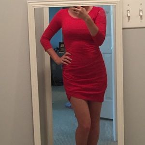 Pink 3/4 length dress with ruched seams. Hits at my mid thigh. NWT.